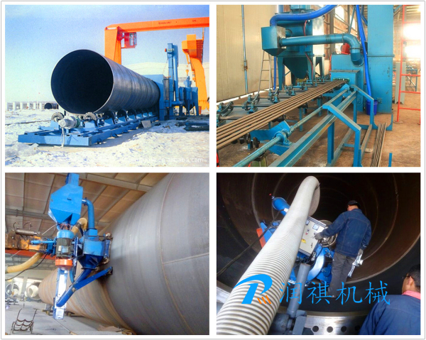 采用液壓馬達驅動,噴丸清理采用啟動馬達驅動。 我公司設計的有大管徑的內壁拋丸機和直徑600mm以下的小型鋼管噴丸機等。該設備采用自動拋丸去除表面銹蝕,利用拋丸器拋出的高速